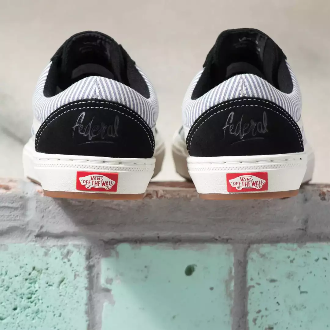 Known for their history of high-quality skateboard shoes, Vans is bringing their decades of know how together with Federal BMX to bring you the Vans Old Skool Federal BMX Shoes-Federal Black/Blue Pinstripe. Featuring DURACAPâ„¢ reinforced rubber sidewalls and toe bumpers, these shoes have been built to provide not only the durability needed for BMX sessions, but provide stability, comfort, and support for your feet.