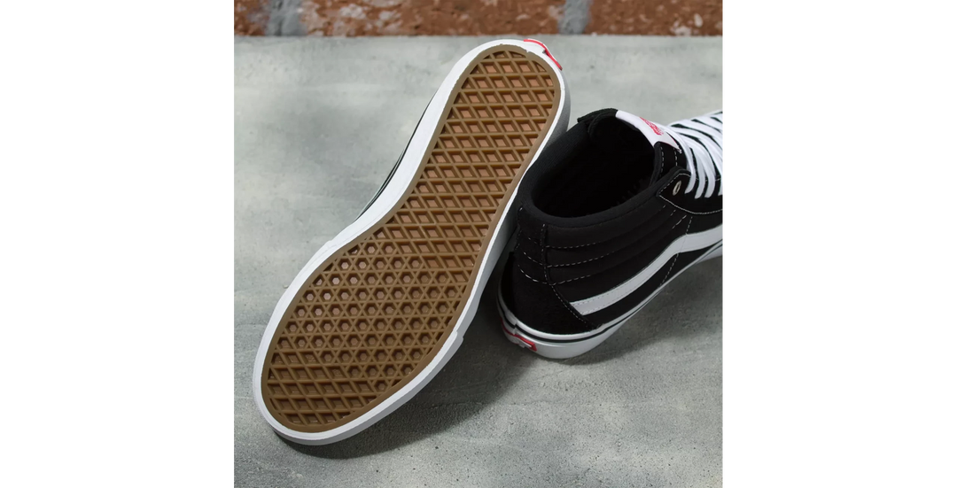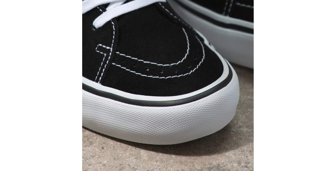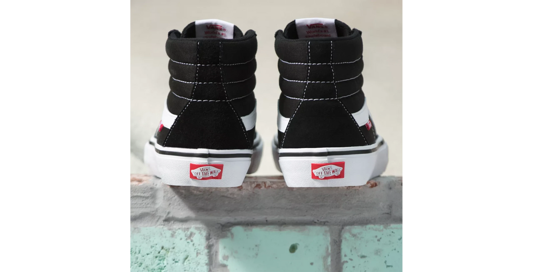 The Vans Sk8-Hi Pro BMX Shoes-Black/White, a Vans classic upgraded for enhanced performance, features sturdy suede and canvas uppers, enhanced footbeds for superior cushioning and impact protection, and Vans original waffle outsoles made of a rubber that offers grip and support. It also includes DURACAP reinforcement rubber underlays in high wear areas for unrivaled durability, and the Vans revolutionary Wafflecup BMX construction for unrivaled support and pedalfeel.