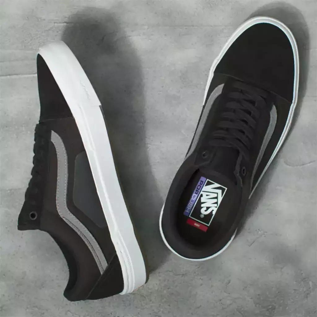 The Vans Skate Old Skool BMX Shoes-Black/Gray/White is the all time classic BMX shoe features Vans Wafflecup BMX construction and DURACAP underlays which provide the best of three worlds: support, durability, and pedalfeel. With canvas and suede uppers these shoes can take all the abuse that riding can throw at them.
