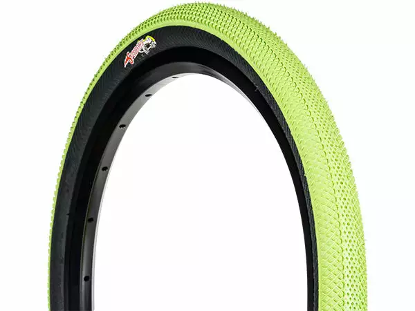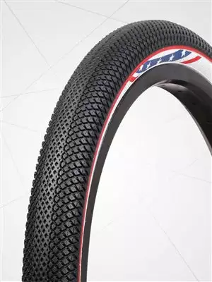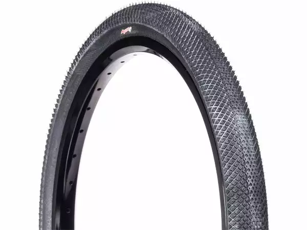 The Vee Rubber Speedster BMX race tire features a light weight Kevlar reinforced bead. This folding tire grips the track and tight turns with small diamond pattern