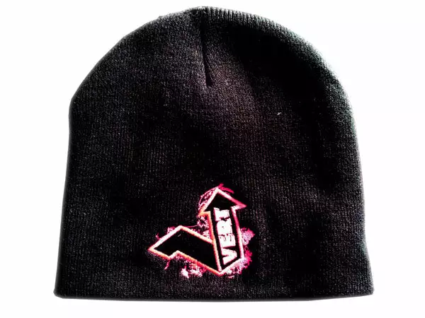 The Vert Clothing Skully beanie features the Vert Clothing logo.