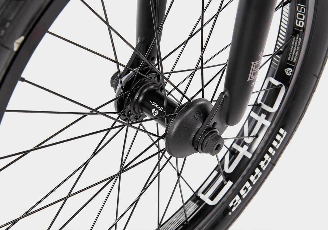- Front Hub: ÉCLAT “SEISMIC” hub, 3/8s” female bolts, 36h