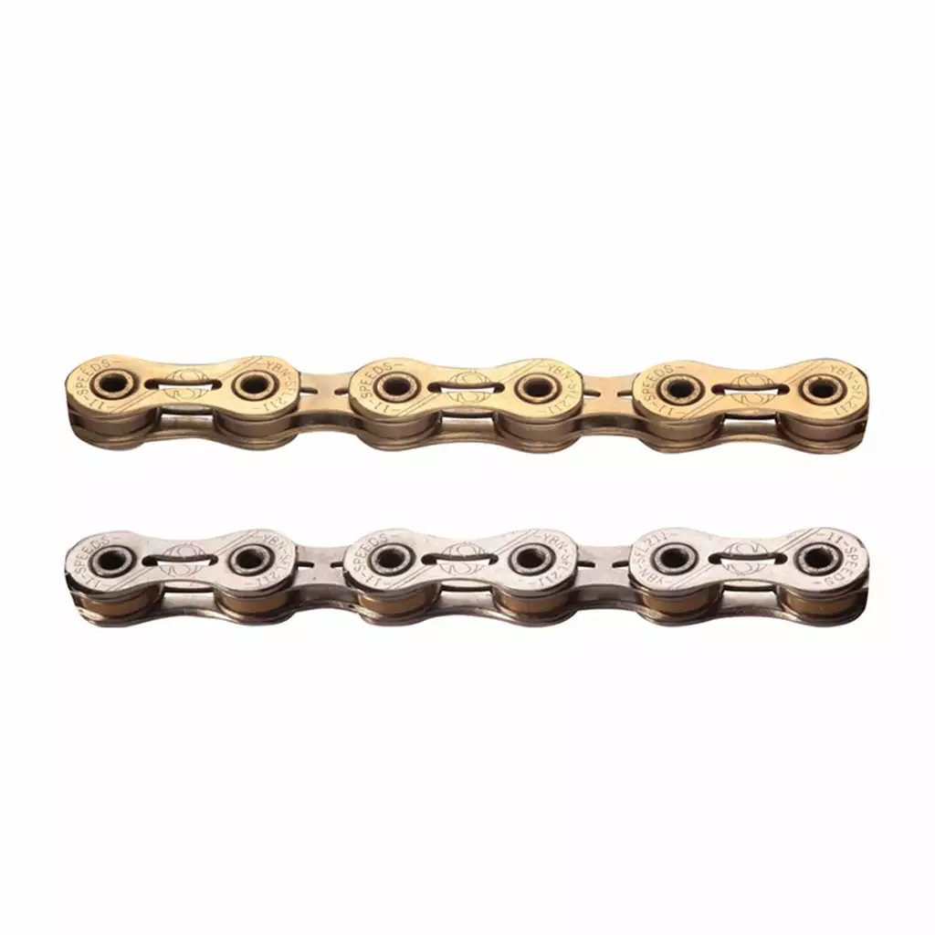 The YBN Titanium 11-Speed Chain at J&R Bicycles uses a combination of high-tech materials and engineering to deliver long-lasting smooth performance. Constructed with high-strength titanium and DHA chromium carbine pins, this chain is not only super durable it is one of the lightest on the market. Compatible with Shimano, Campy and SRAM 11-speed drive train systems.