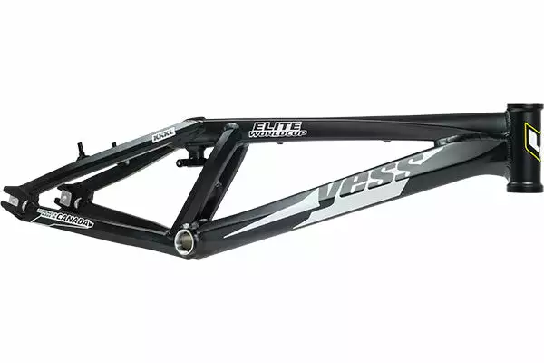 The Yess Elite World Cup BMX Race Frame-Black is a structurally redesigned frame with similar geometry. The most notable changes will be the seat tube angle which will now be 72° and the seat-tube diameter which will accept a 22.2mm post. In addition the frame includes a seat clamp so a seperate one does not need to be purchased. The first shipment will be white or black only.
